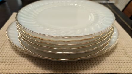 Rare Vintage 1950s Swirl Milk Glass Plates w/ Gold Trim (Anchor Hocking Fire-King Dinnerware / Glassware 7 Plate Set)$42Stonecrest, GA