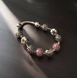 7.5 Inch Sterling Silver Plated Charm Bracelet with Swarovski Crystal Antique Silver Beads/ Hot New 2025 Fashion Designer Jewelry $20Riverside County, CA