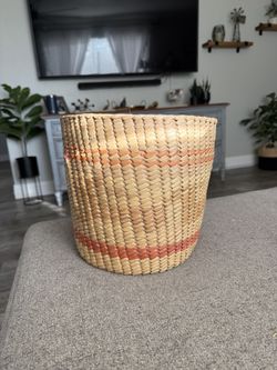 Natural handwoven basket with subtle colored accents. Perfect for plant holder, blanket storage, towels, toys, or decorative use in farmhouse or boho $15Ridgecrest, CA