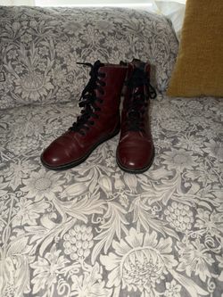 Authentic Dr. Martens leather lace-up boots in rich oxblood/burgundy. Classic 8-eye style with “With Soles Bouncing” heel tabs and AirWair cushioned r$40Ridgecrest, CA