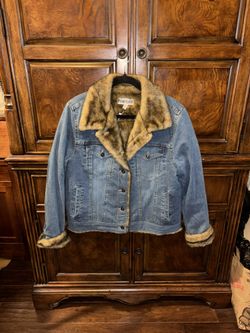 Vintage 1990’s Marvin Richards Blue Denim Jacket with Brown Faux Fur Trim Size Large$125Phoenix, AZ