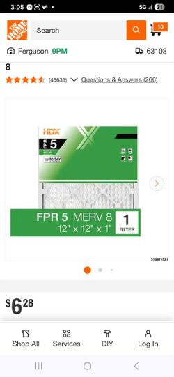 12 in. x 12 in. x 1 in. Standard Pleated Air Filter FPR 5, MERV 12 pack$42St. Louis, MO