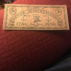 Vintage Berwick Sesquicentennial 5 Cent Cardboard Souvenir $12Selinsgrove, PA