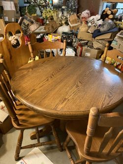 43” Round Oak Table W/Pedestal Base & 4 Chairs $299Henderson, NC