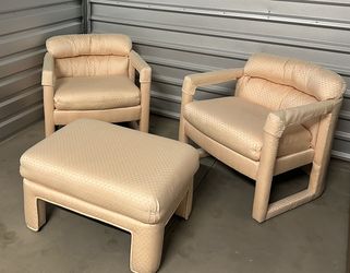 Set of Vintage Drexel Milo Baughman Upholstered Parsons Style Lounge Chairs & Ottoman $600Phoenix, AZ