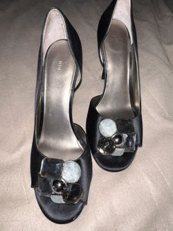 Dark Navy Blue High Heels. Jewels On The Front. Satin Type Material. Worn Once To A Wedding. Size 9W. $23Riverside, CA