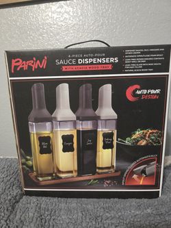 PARINI 4 PIECE AUTO-POUR SAUCE DISPENSERS WITH ACACIA WOOD TRAY$10Highland, CA