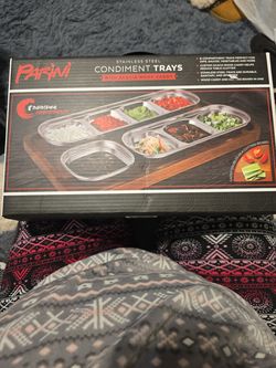 Parini Stainless Steel Condiment Trays with Acacia Wood Caddy$5San Bernardino, CA