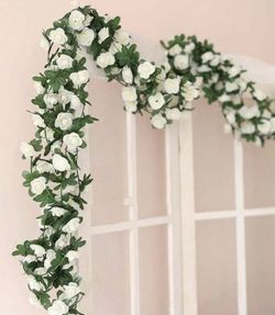 12 Pcs /Artificial White Rose Vine Garland, Wedding Venue Decor, Home Bedroom Living Room Bathroom Wall Hanging Decor, Outdoor Garden$60Jurupa Valley, CA