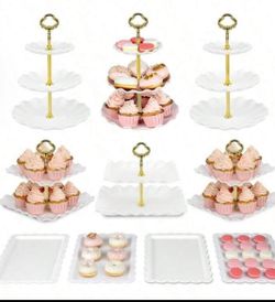 10 PCs / 10 Pcs Cake Stand White Plastic Dessert Table Stand Set 4 Pcs 3 Tired Cupcake Display Stands Cookie Tray Rack Serving Tray Cake Display Tower$40Jurupa Valley, CA