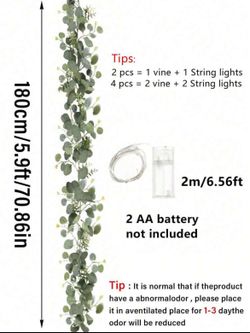 4pcs / 2 Light / 2 Pcs Eucalyptus Leaf With LED Lights, Artificial Eucalyptus Leaf Table Runner, Fake Greenery Vines For Home Decor, Room, Class$35Jurupa Valley, CA