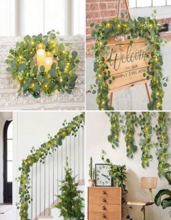New / 4 Pcs / Eucalyptus Leaf Garland With LED Lights, Artificial Eucalyptus Leaf Table Runner, Fake Greenery Vines For Home Decor$40Jurupa Valley, CA