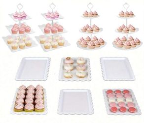 10 Pcs Cake Stand White Plastic Dessert Table Display Set 4 Pcs 3 Tired Cupcake Stand Cookie Tray Rack Serving Tray Cake Display Tower$50Jurupa Valley, CA