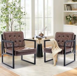 COLAMY Mid Century Modern Accent Chair, Comfy Living Room Chairs, Brown Leather Accent Chair, Faux Leather Reception Armchair with Metal Legs for Livi$90San Bernardino, CA