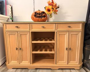 60” Wine Coffee Bar Cabinet Glass Top With 3 Drawers And Wine Rack$150Boynton Beach, FL