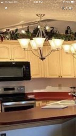 Very Nice Polished Nickel/Silver Kitchen/Dining Room Chandelier 5 Light White Frosted Globes$20Leesburg, FL