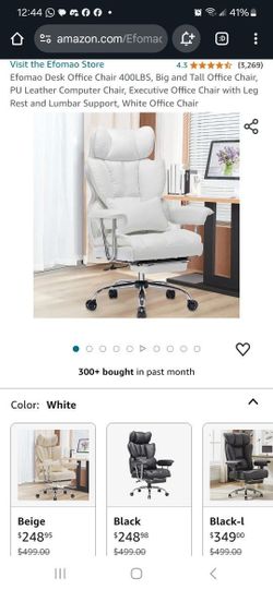 $ Msrp 499 Efomao Desk Office Chair Big High Back Chair PU Leather Computer Chair Managerial Executive Swivel Chair with Lumbar Support (White)$160Nashville, TN