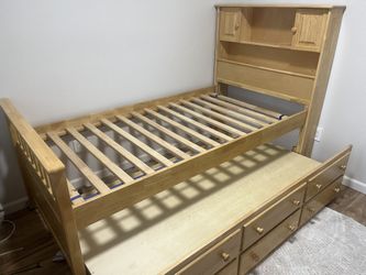 Natural wood twin size bed and vanity set $500Vancouver, WA