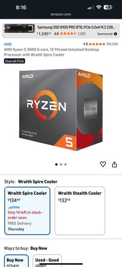 Ryzen 5 3600 w Cooler$85Sterling Heights, MI