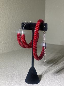 Earrings and bracelet set handmade Women Set Beads Red color Gift idea for her$30Meridian, ID