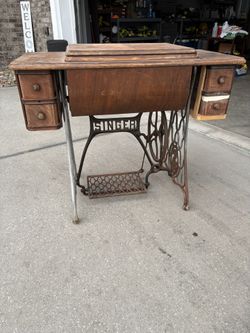 SoldVintage Singer Sphinx Sewing Table. Cast Iron Base with Singer Logo on wheels. TABLE ONLY NO MACHINE. Great for a project or collectible. Early 1900’s$100Myrtle Beach, SC