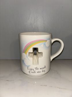 Vintage Papel ceramic coffee mug with a 3D cross cutout and the text, "Enjoy the miracle of each new day"$10Chula Vista, CA