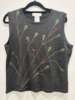 Vintage Pierre Cardin dark gray wool blend sleeveless sweater vest with floral embroidery. $25Chula Vista, CA