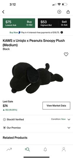 Kaws x Uniqlo x Peanuts Snoopy Plush medium $50Hyattsville, MD