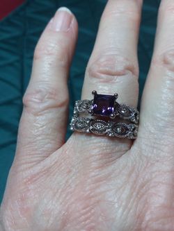 Size 9 Exquisite Engagement Ring And Wedding Band Set With Purple Setting And Clear Cubic Zirconia$30Virginia Beach, VA