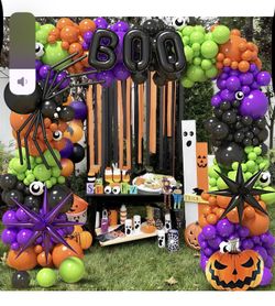 Halloween balloon garland arch kit with orange, black, green, and purple eyes, pumpkin, black, purple, burst, and star foil balloons for Halloween par$20Hialeah, FL