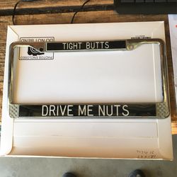 License plate frame IT SAYS TIGHT BUTTS DRIVE ME NUTS $20Apple Valley, CA
