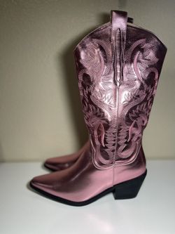 Women's Vintage Boots Fashion Wild Western Cowboy Boots Pointed Toe Chunky Heel Boots Shiny Embroidered Mid Boots $40Hemet, CA