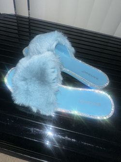Blue Furry Slides with Rhinestone Trim size W8$15Costa Mesa, CA