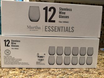 24 New Martha Stewart Stemless Wine Glasses In Two Boxes$20Bothell, WA