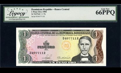 1981 1 Peso Oro Banco Central Note Dominican Republic Legacy Gem New 66 PPQ$35Cliffside Park, NJ