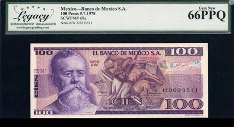 Mexico 1978 100 Pesos Banco de Mexico Note SCWPM-68a Legacy Gem New 66 PPQ$50Teaneck, NJ