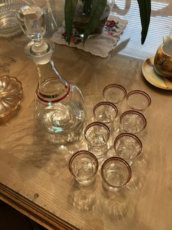 Vintage Gold/red Stripe Glass Decanter $75Lake Clarke, FL