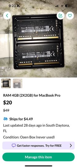 MacBook Pro Ram 4GB$20South Daytona, FL