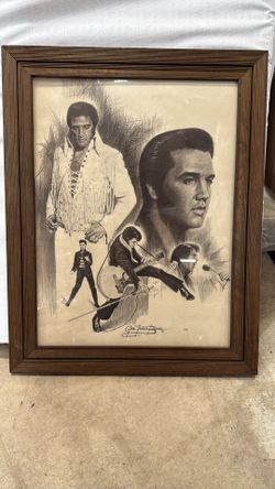 Framed vintage 1977 Elvis Presley 5-image pencil lithograph print by artist Glen Fortune Banse$35Orange, CA