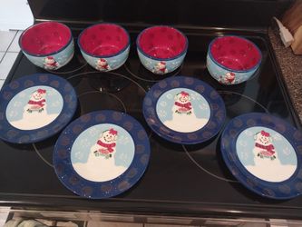 Snowman Ceramic Bowls And Plates.$40La Porte, TX