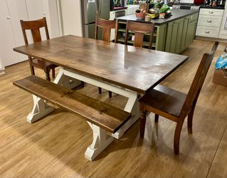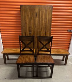 Gorgeous Hardwood Dining Room Set With 4 World Market Chairs And Bench$700Carlsbad, CA
