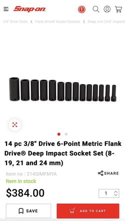 Snap-On 14pc 3/8” Deep Impact Metric Socket Set (214SIMFMYA)$300Hollywood, FL