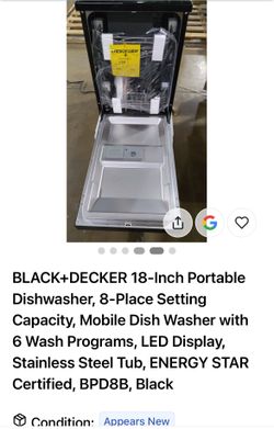 BLACK+DECKER 18-Inch Portable Dishwasher$250Elk Grove, CA