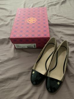 Tory Burch Beige Claremont Quilted Leather Cap Toe Gold Reva Wedges size 7.$65ROWLAND HGHTS, CA