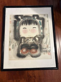 Vtg Mid Century Watercolor Ink Painting Chinese Girl Signed Guo Cheng Framed$178City Of Industry, CA