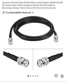 Superbat 12G SDI Cable 6ft BNC Male to Male Belden 4694R$35Alhambra, CA