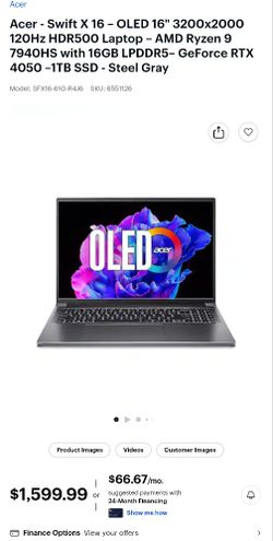 GAMING BEAST Acer Swift X16!$845West Palm Beach, FL