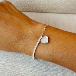 925 Sterling silver half tennis chain half cable chain heart charm bracelet$37Wimauma, FL
