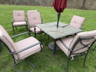 Stone Tule Patio Table With Umbrella And 6 Chairs $185Freedom, PA