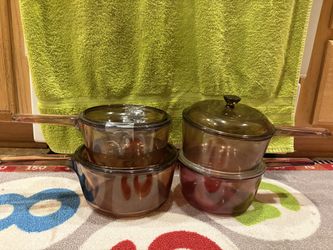4 Visions Ware Corning Glass Sauce Pan Pot 1.5 L Amber Cookware USA Pyrex Lid$95Clackamas, OR